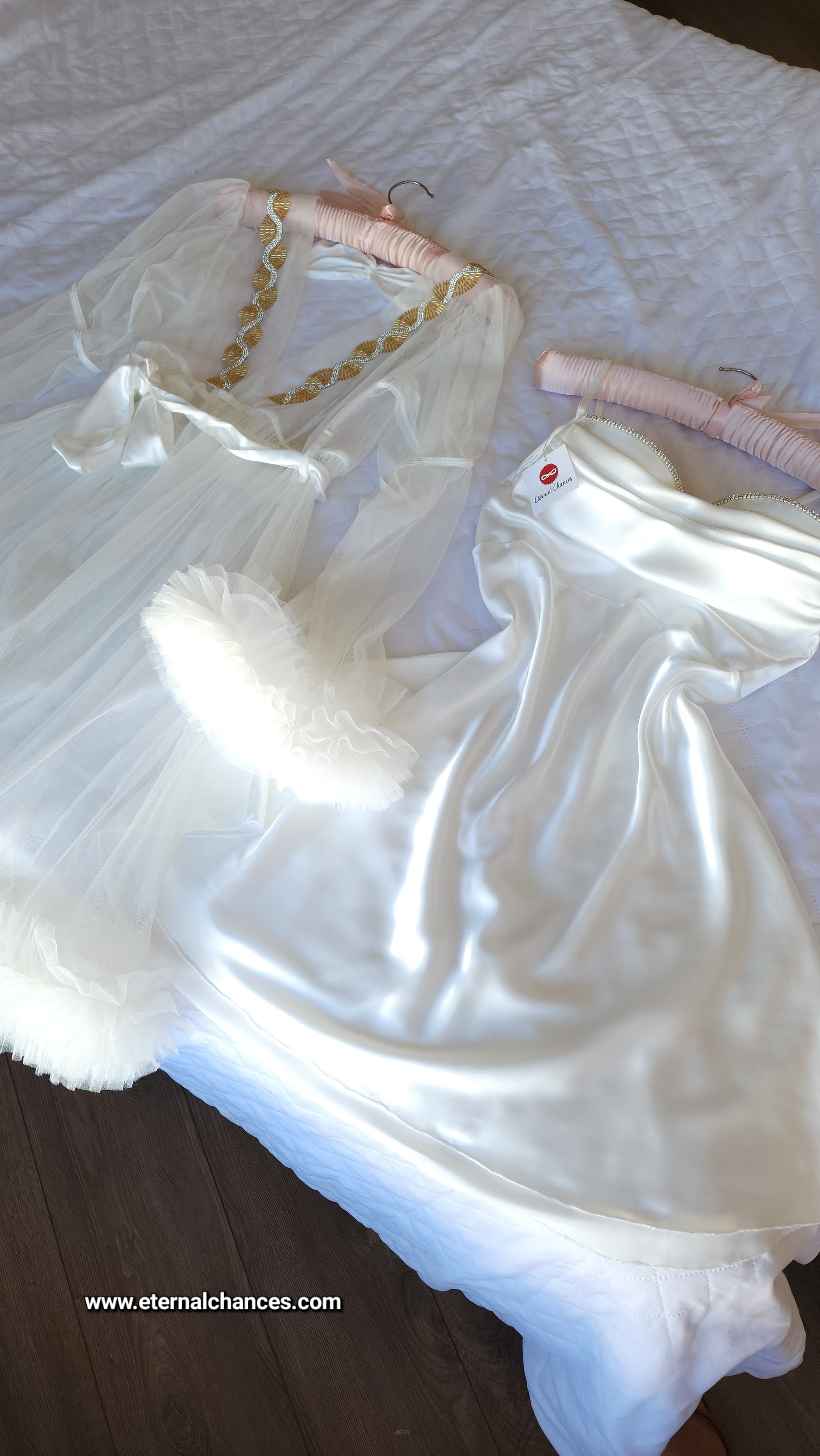 Ensemble Court Mariée nuisette + déshabillé Glamour – Satin Blanc & Tulle Transparent Taille unique standard