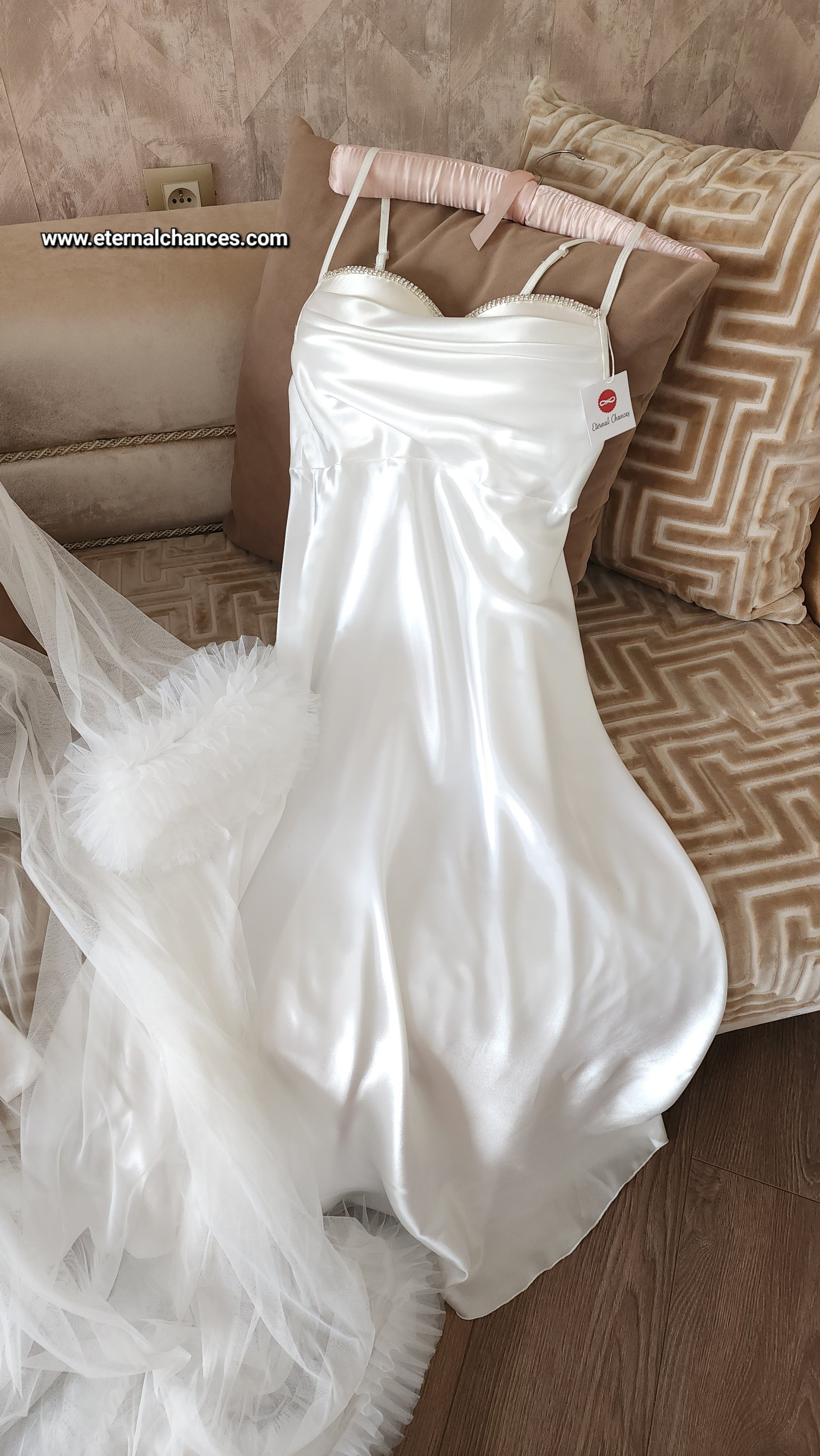 Ensemble Long Mariée nuisette + déshabillé Glamour – Satin Blanc & Tulle Transparent Taille unique standard