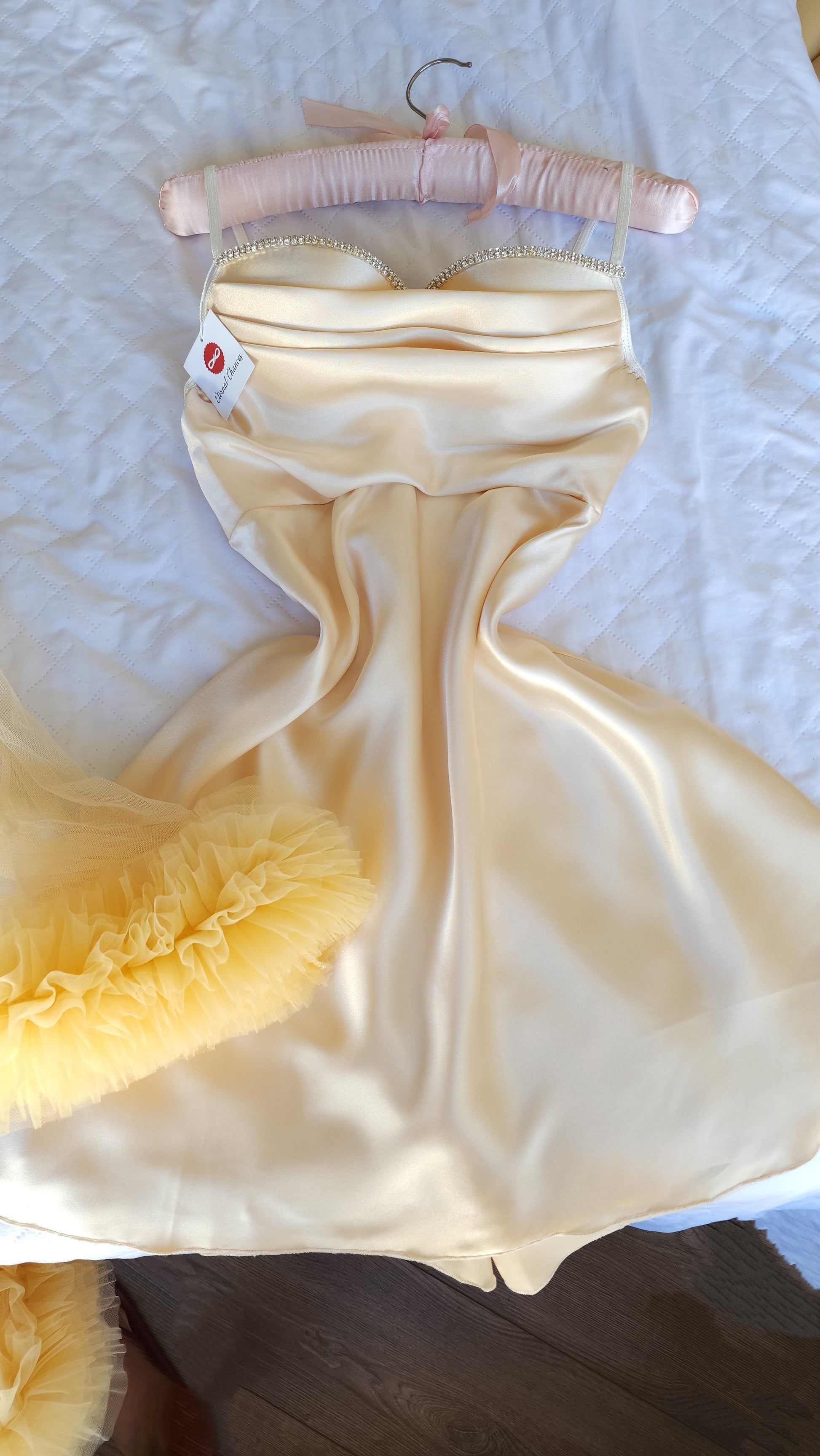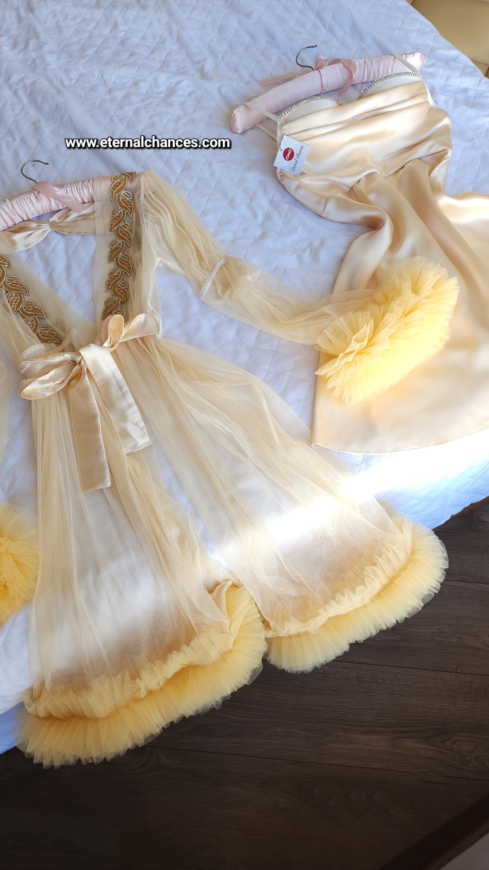 Ensemble Court Mariée nuisette + déshabillé Glamour – Satin Beige & Tulle Transparent Taille unique standard